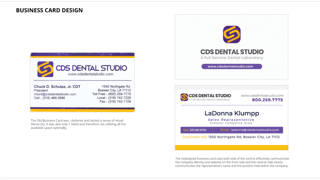 The result is a polished and cohesive brand identity that reflects CDS Dental Studio's commitment to excellence and positions them as a leader in the dental industry. This rebranding effort has provided the foundation for all future marketing materials and company communications, ensuring a unified and professional appearance.