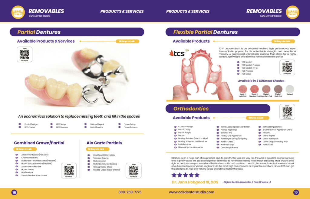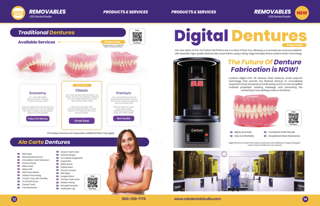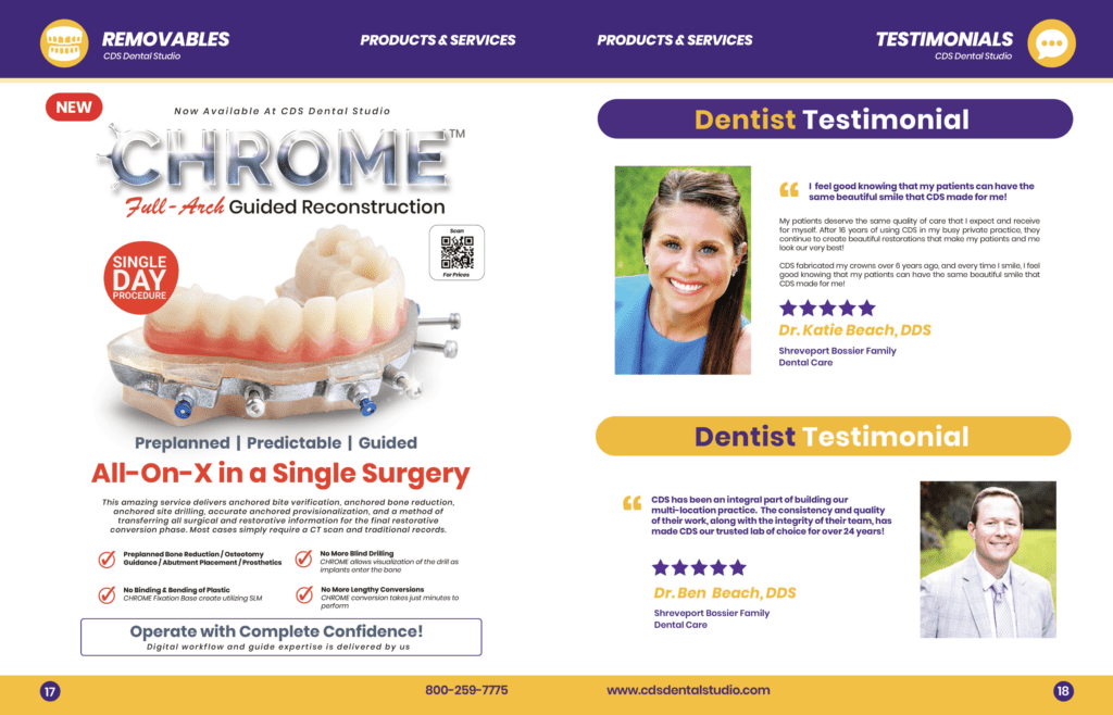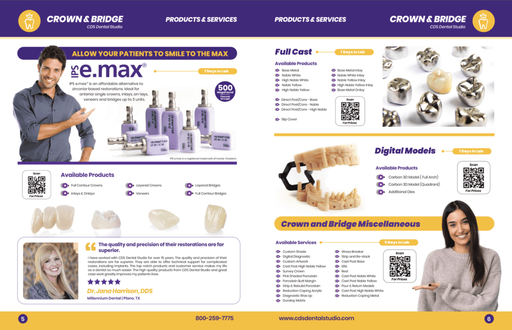This redesign not only modernizes the catalog but also reinforces CDS Dental Studio's commitment to quality and excellence in dental care. The result is an effective marketing tool that appeals to both existing and potential clients, showcasing the studio’s offerings in a fresh and engaging manner.