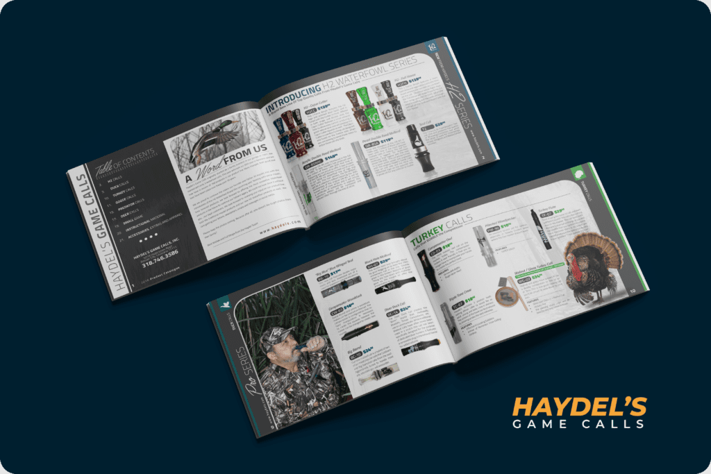 Designed and executed the layout for the Haydel's Game Calls 2016 Catalog, showcasing a diverse range of game calls and accessories. The catalog aims to provide a comprehensive, visually appealing, and easily navigable resource for hunters and outdoor enthusiasts.